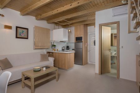 Die Villa Terpsichore ist eine Villa mit einem Schlafzimmer in abgeschiedener Lage auf einem Hügel über dem Strand von Stalos und Agia Marina, 900 m vom warmen Wasser des Kretischen Meeres entfernt. Es ist ein idealer Zufluchtsort für Paare, die Flitterwochen, ein Jubiläum oder einfach nur dem Alltag entfliehen und sich stilvoll und komfortabel entspannen möchten. Das Nachtleben in Platanias mit Open-Air-Bars und Tanzclubs macht die Villa auch ideal für zwei Paare und Freunde, die sich ein Bild von Kretas Partygeist machen möchten. Die Villa selbst bietet komfortable Unterkünfte für kleine Familien oder 4 Erwachsene. Ein privater Pool befindet sich in Gärten mit Blick auf das Meer. Nur wenige Meter entfernt schaffen ein Grill und ein schattiger Kiosk eine entspannende Ecke, um die Meeresbrise für die warmen Sommerabende zu spüren. In der Villa gibt es eine Küchenzeile, einen offenen Raum zur Lounge und ein Sofa, das sich in ein Bett verwandeln lässt. Das Schlafzimmer in der obersten Etage verfügt über ein eigenes Bad und Blick auf die Küstenlandschaft von Agia Marina.