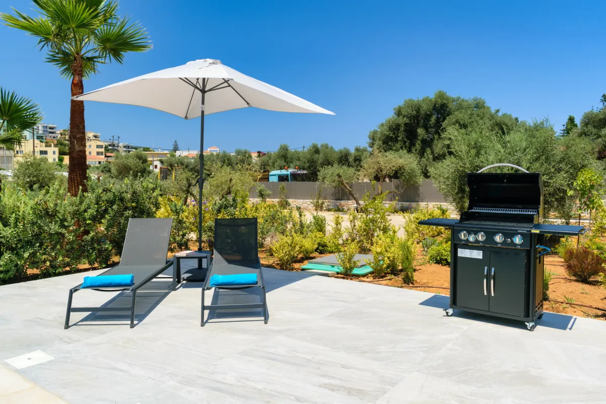 Das Ethereal Villas Chania ist mit einem wunderschönen Unterhaltungsbereich im Freien geschmückt, der reichlich Sitzgelegenheiten am Pool, Koch- und Speisemöglichkeiten sowie eine Außendusche bietet. Der große blaue Pool lädt die Gäste dazu ein, sich in seinen erfrischenden Tiefen zu entspannen und dabei die Insellandschaft zu überblicken.