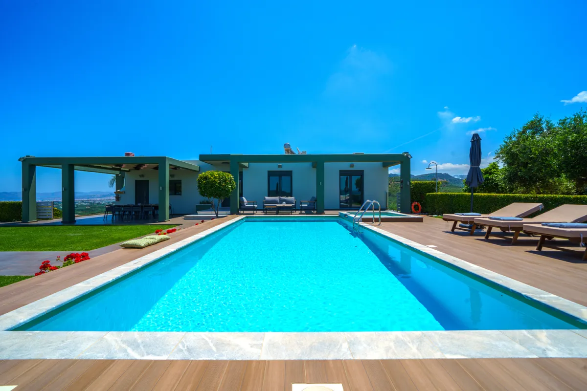 This was one of our favorite stays. The villa is amazing and has everything. The pool and outdoor space was great and we enjoyed an amazing 360 degree view along with a peaceful and quiet surrounding. Location is great and everything is nearby. The hosts are amazing and let us pick their fruits and sent us off with a nice Cretan bottle of Olive Oil.