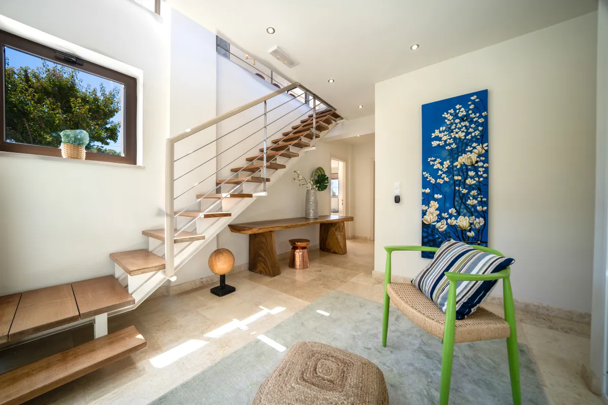 Das Wohnzimmer der Luxusvilla Poseidon One ist komfortabel eingerichtet mit großzügigen, prächtigen Sitzgelegenheiten, einem großen Sat-TV und einem Soundsystem. Es gibt auch eine Klimaanlage, um den Komfort der Gäste zu gewährleisten. Durch den offenen Grundriss der Ferienvilla grenzt das Wohnzimmer an das Esszimmer, das geschmackvoll mit einer großen, modernen Essgruppe und ansprechender Beleuchtung eingerichtet ist. Die moderne Küche ist komplett mit allen notwendigen Geräten und Annehmlichkeiten ausgestattet.