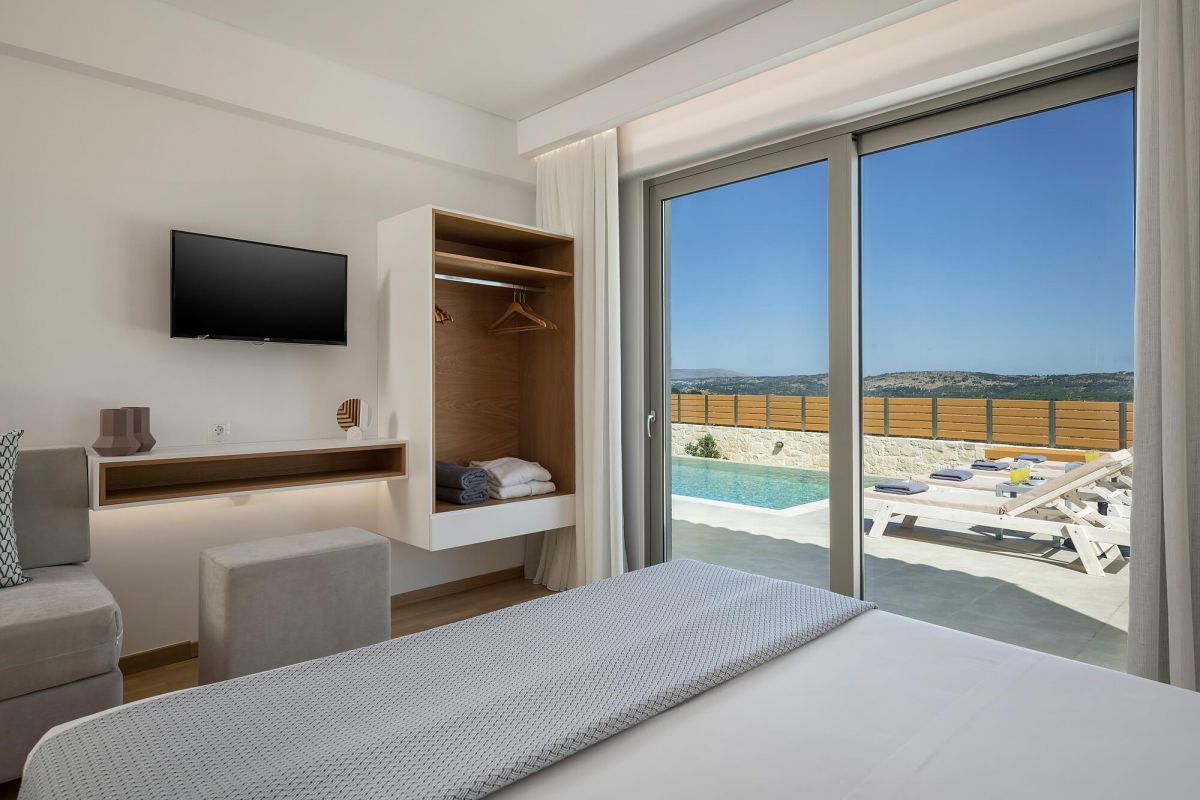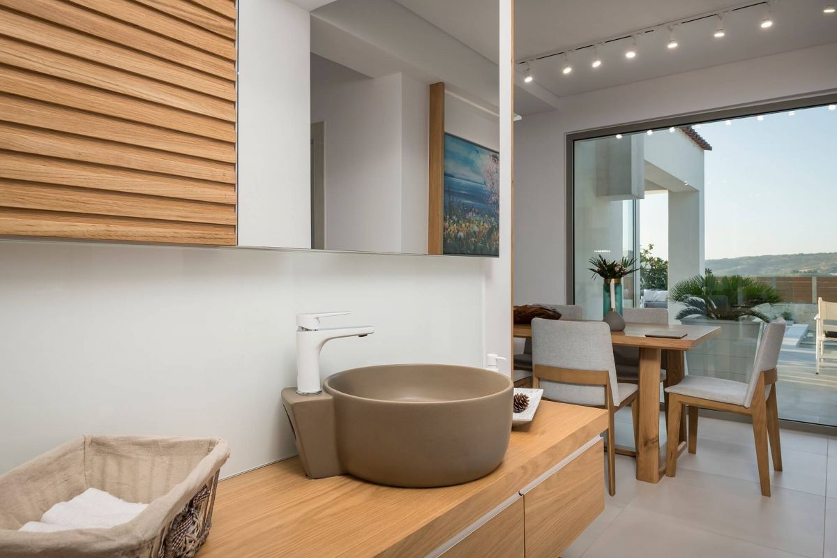 Die White Harmony Villa ist eine komplett weiße Luxusvilla in einem ruhigen Dorf in der ländlichen Gegend von Apokoronas. Sie bietet Platz für 6 + 2 Personen in 3 Doppelzimmern. Das Innen- und Außenbereich harmonieren perfekt mit der Landschaft, da jedes Detail berücksichtigt wurde, um eine unglaubliche Aussicht auf die Umgebung und den Poolbereich zu schaffen. Eine der attraktivsten Eigenschaften dieser Ferienvilla sind die Fensterreihen, die das Haus umgeben und die Räume mit Sonnenschein überfluten. Darüber hinaus dominieren Weißtöne mit Erdtönen und Holzdetails in den eleganten Möbeln und dekorativen Elementen, die ein Zuhause mit Identität schaffen.