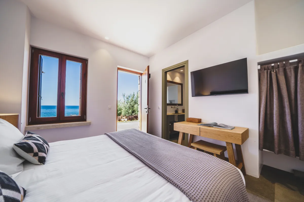 Das Beach House Arvi East verfügt über zehn wunderschön gestaltete Schlafzimmer, die Komfort und Bequemlichkeit perfekt vereinen. Alle zehn Schlafzimmer bieten einen atemberaubenden Meerblick, sechs davon haben direkten Zugang zum Meer. Alle sind mit Fernsehern und einer Kombination aus Doppel- und Einzelbetten ausgestattet – ideal für Familien und Gruppen.