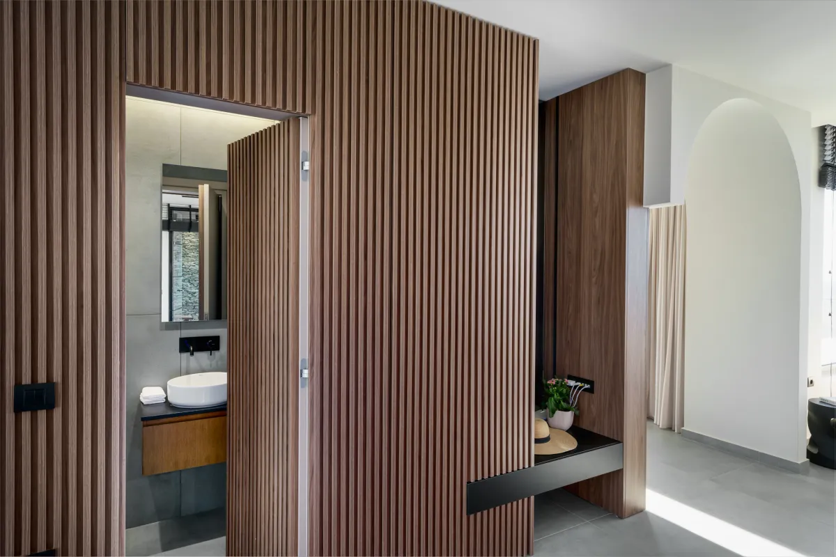 Das erste Obergeschoss, erreichbar über Treppe oder privaten Aufzug, verfügt über drei stilvolle Doppelzimmer, von denen eines in zwei Einzelbetten umgewandelt werden kann. Alle Schlafzimmer sind mit eigenem Bad, Klimaanlage, Smart-TV, Minikühlschrank und privatem Balkon mit Panoramablick auf das Meer ausgestattet. Genießen Sie jeden Morgen den atemberaubenden Blick auf den endlosen blauen Horizont.