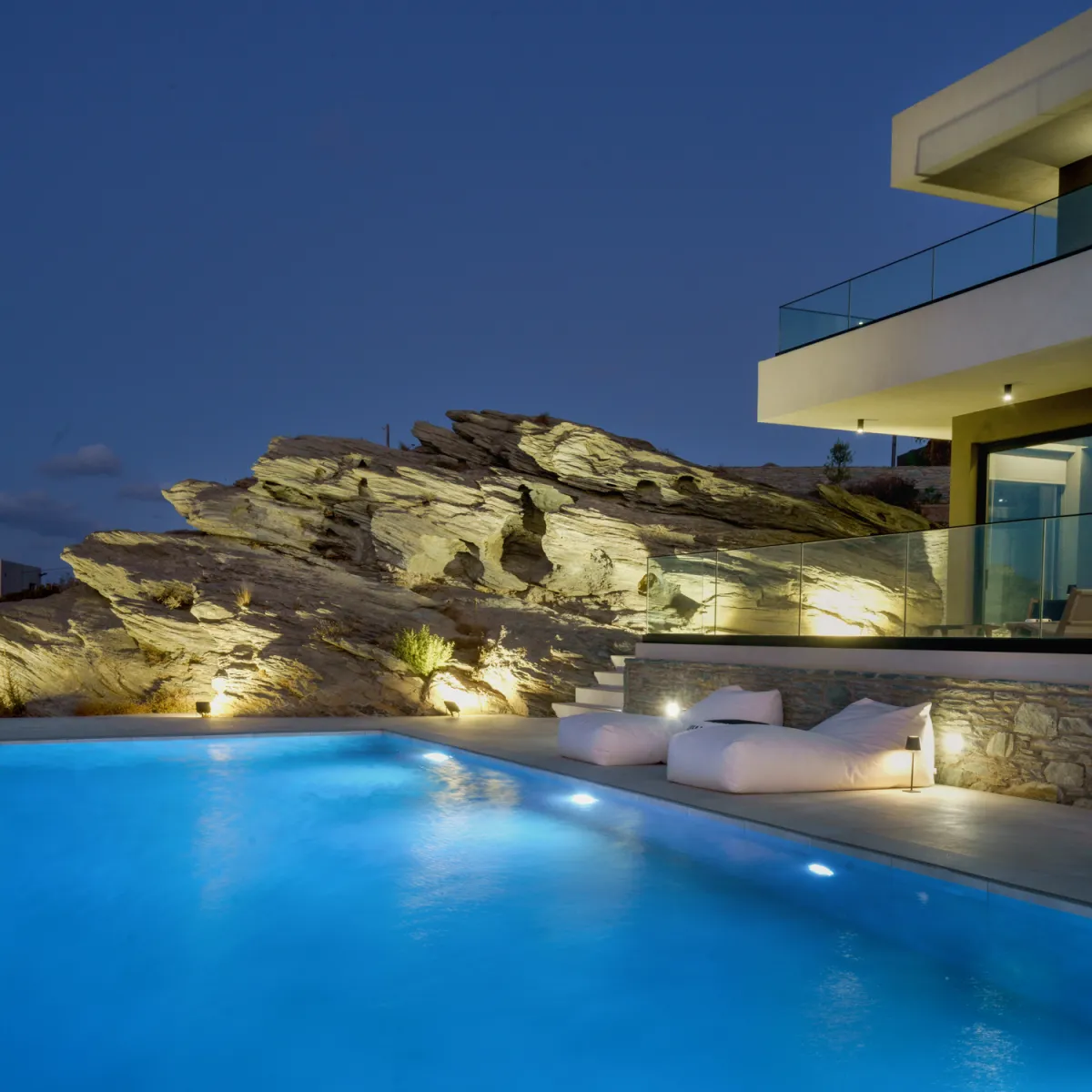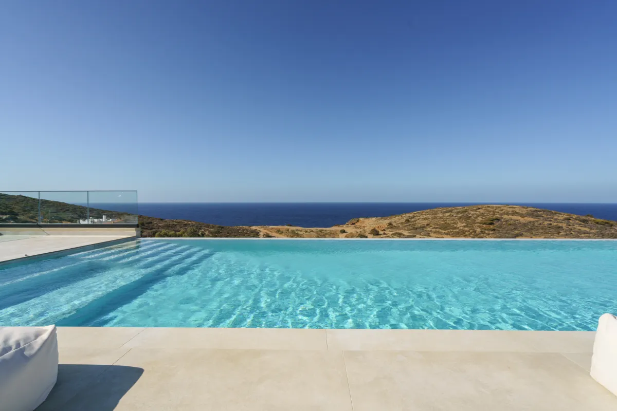 Treten Sie hinaus in Ihre private Oase, wo ein spektakulärer Infinity-Pool nahtlos mit Meer und Himmel verschmilzt. Der großzügige Poolbereich ist mit Sonnenliegen, Sonnenschirmen und einer Außendusche ausgestattet – perfekt für lange, sonnige Tage am Wasser. Im Außenbereich befindet sich außerdem ein Grill, ideal für Mahlzeiten im Freien mit unvergesslichem Ausblick.