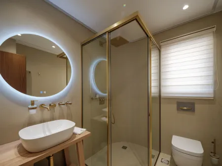 Erleben Sie die perfekte Mischung aus modernem Luxus und traditionellem kretischen Charme in den Innenräumen der Villa Paradiso.
