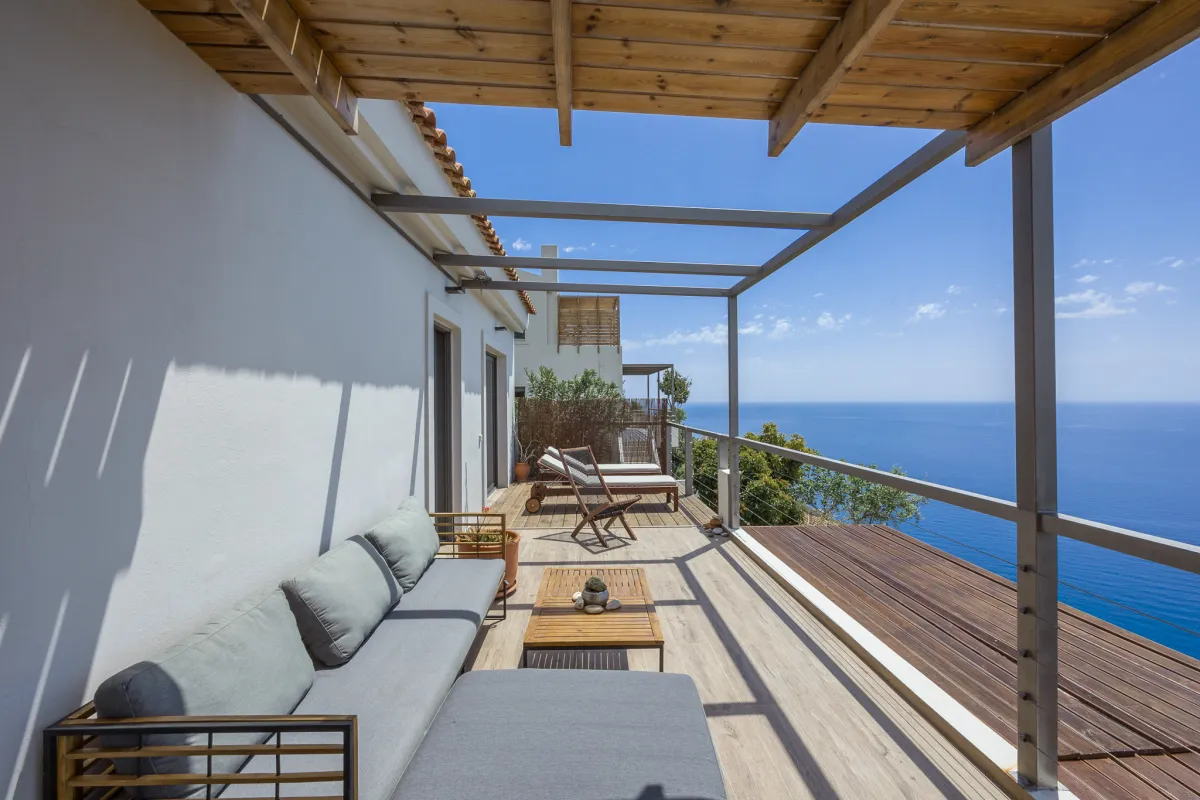 Diese griechische Luxusvilla befindet sich im beliebten Urlaubsziel Rodakino (wörtlich übersetzt „Pfirsich“) auf Südkreta. Die Villa liegt in der Nähe des malerischen Dorfes Plakias und ist ein ausgezeichneter Ort, um verschiedene kretische Attraktionen zu erkunden. Die Villa Stefanos ist die Heimat einer modernen, klassischen Ästhetik und eines beeindruckenden Meerblicks. Die Lounge der Villa Stefanos ist geschmackvoll eingerichtet und mit einem großen TV und trendigen Sofas ausgestattet. Der offen gestaltete Wohnbereich des Ferienhauses grenzt an die Lounge mit Ess- und Küchenbereich und ist stilvoll eingerichtet und mit allem Komfort ausgestattet. Der Wohnbereich der Villa verfügt über große Glastüren, die zu einem schattigen Balkon mit Gartenmöbeln und einem privaten Poolbereich mit Sonnenliegen, Sonnenschirmen, einer Hängematte und einer Dusche führen. Die Luxusvilla bietet auch Zugang zu einer Tischtennisplatte und einem Weinberg. Die Villa Stefanos verfügt über 3 elegant eingerichtete Schlafzimmer, die jeweils über einen modernen Schreibtisch und einen Kleiderschrank verfügen. Das erste ist ein Einzelzimmer im Erdgeschoss und hat ein Bett. Die anderen beiden Schlafzimmer befinden sich im Obergeschoss und haben jeweils zwei kombinierte Einzelbetten, Glastüren und einen großen Balkon mit spektakulärem Meerblick. Es gibt ein komplettes Badezimmer auf jeder Etage und einen Abstellraum mit Safe im Erdgeschoss. Die luxuriöse Ferienvilla Stephanos bietet ein Willkommenspaket mit frischem Obst, Wein und Kaffeekapseln für die Gäste. Ein Reinigungsservice wird je nach Bedarf an 3 bis 4 Tagen pro Woche angeboten und es gibt einen Privatparkplatz für 1 Fahrzeug. Buchen Sie Ihren Luxusurlaub in der Villa Stefanos und lassen Sie sich von ihrem raffinierten Stil überwältigen, während Sie in der Pracht eines perfekten griechischen Urlaubs schwelgen!