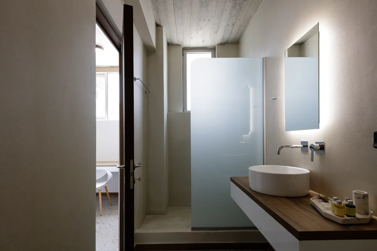Domus Aestas Myrtia verfügt über 3 helle und luftige, stilvoll eingerichtete Doppelzimmer zur Unterbringung von Gästen. Alle 3 Schlafzimmer verfügen über Kingsize-Betten, geschmackvolle Holzoberflächen, viel Stauraum und Klimaanlage. Die Badezimmer, eines davon mit eigenem Bad, sind mit Handtüchern, Hausschuhen, Haartrocknern und kostenlosen Toilettenartikeln ausgestattet. Reinigung und frische Bettwäsche werden alle 3/4 Tage bereitgestellt. Es gibt auch ein Bügeleisen und Bügelbrett sowie eine Waschmaschine.