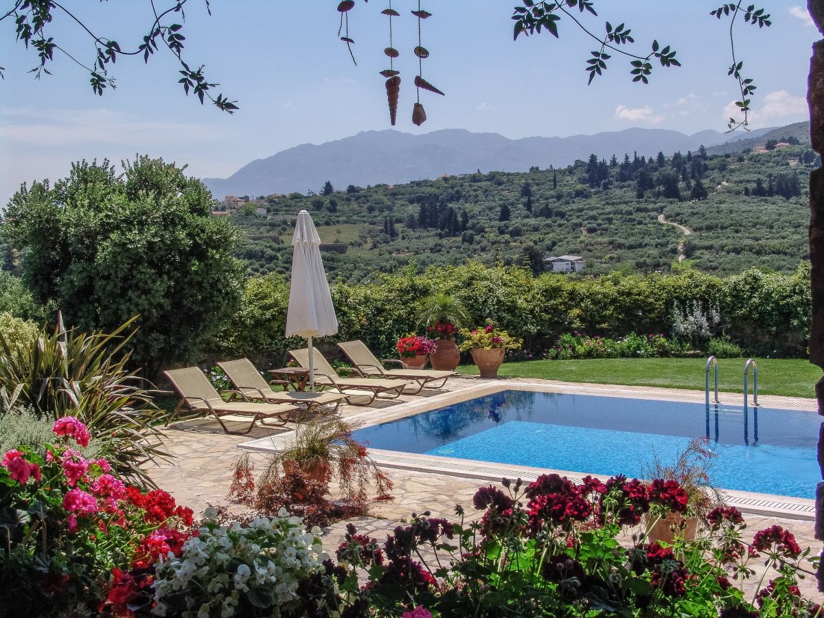Kalithea Chania Villa is a nice well-maintained vacation villa with beautiful views of the surrounding hills, ideal for a relaxing holiday in Apokoronas, Crete. This pretty holiday property can sleep up to 6 people comfortably in 3 bedrooms, each with its own en-suite bathroom (for more people, prior arrangement is necessary). Hidden away from any indiscrete eyes, the only sound that might disturb the visitor is the song of the birds. Use your here stay to enjoy calm and relaxation for grown-ups and endless games and playing for children and teenagers with safety. The 200 m2 and two levels of the villa are tastefully decorated, and equipped to cover all the needs a guest would need. On the ground floor, there is an open space for a fully equipped kitchen to prepare meals using local produce, a living room with a dining table and a fireplace to take advantage for winter escapes. Kalithea Chania Villa is able to provide you with all the necessary facilities, so you can enjoy the magic and the warmth and comfort of winter in a small rustic village in the heart of Cretan nature. The outdoor area is attached to the natural environment offered a green clad environment with an iridescent swimming pool, and a large shaded patio. For your pleasure, on the terrace there is a barbecue grill and a patio, where dining with friends and family is a huge part of the Cretan culture. After a busy day of sightseeing, heat up the barbecue for dinner at the al-fresco table or have a glass of local wine beside the pool. From a lounger on the terrace by the pool you can watch the sun move across the landscape, relax walking around the garden, or let your senses leading you to explore the trees, the flowers, and the aromatic herbs that give off scents on warm summer days.