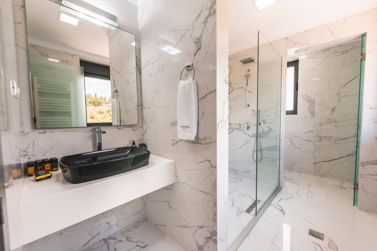 The beautiful Villa Marevista in Plaka, in the Apokoronas region on the northwest coast of Crete, is the ideal destination for a relaxing, carefree, and luxurious holiday in Greece. Sitting on a spacious 4,285 sq.m. plot, the secluded location of the luxury villa ensures privacy, yet there are many holiday attractions within easy reach of the rental property. The private luxury villa offers an elegant living area, stylishly furnished with a large corner sofa and a nesting coffee table as well as a smart TV with satellite. In addition, there are occasional chairs, a safe, a fireplace, air conditioning, and 24/7 concierge services available. The dining area is furnished with a stylish wooden table and 10 comfortable dining chairs. Villa Marevista is equipped with a stylish, modern kitchen with a built-in oven and smooth electric stovetop, a microwave, a refrigerator, as well as a Nespresso coffee machine, a blender, a toaster, and a kettle. Additionally, there is a breakfast counter with 4 chairs. The luxury villa is home to 3 double bedrooms, each with an ensuite bathroom and sea-facing balconies. The bedrooms are stylishly decorated and furnished with either double or twin beds (pushed together), bedside tables, a desk / vanity table, occasional chairs, a cushioned wall seat in one of the bedrooms, and ample wardrobe space. The ensuite bathrooms are equipped with showers, toilets, complimentary toiletries, towels, and hairdryers. Furthermore, there are amenities including a washing machine, iron, and ironing board provided. The impeccable outdoor area and endless gardens are also host to a large, heated swimming pool with a beautiful sea view. There is a verandah with a barbeque and dining area, with a large outdoor table and 10 chairs available for guests to use. There are comfortable sun-loungers and a shaded swing bench lining the pool, which is a beautiful crystal blue. This is an excellent area for entertaining friends or simply relaxing in the sun.The little ones will enjoy the playground with foosball, and a slide. This luxury holiday home offers private parking, and the property is fenced and has outside lighting for additional security. There are complimentary local activities offered to guests of Marevista Villa and every effort is made to ensure visitors enjoy the famous Cretan hospitality and an unforgettable vacation.