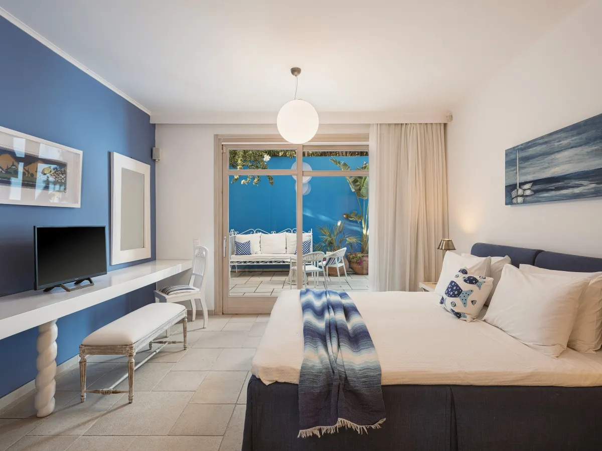 Guests will delight in the majesty of their surroundings at the luxurious Ammos Villa holiday accommodation. The private villa offers an expansive outdoor terrace including a large, heated swimming pool and comfy seating. There is a dining table and chairs for outdoor dining and a fully equipped charcoal barbeque. There is also private parking and 24-hour security on the premises.