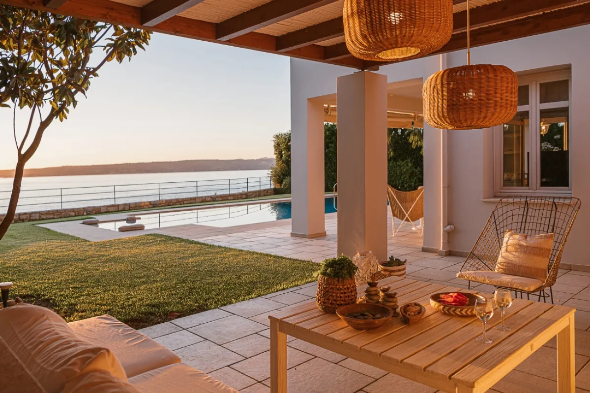 On the resort island of Crete, the luxurious Ammos Villa is set between the Aegean Sea and the White Mountains, a picturesque holiday destination. The tranquil surroundings and spacious design make this luxury holiday villa ideal for couples and groups of friends.