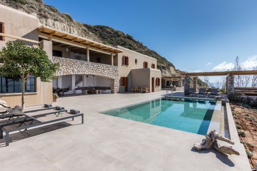 This Crete luxury villa is in the renowned holiday region of Heraklion, just 2 km from Arvi village and 15 km from the city of Viannos. The large and magnificent villa is set along its own private beach and surrounded by beautiful natural hillsides, amid sand dunes and stunning scenery. The Beach House consists of two main blocks—the main house and the guesthouse block—and comfortably sleeps 28 guests.