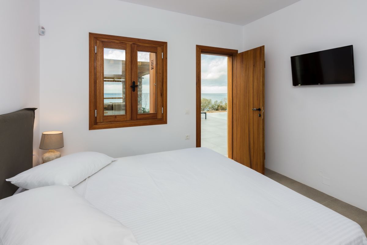 The Beach House Arvi has an expansive and luxurious outdoor entertainment area overlooking the sea. Its features include a vast swimming pool, outdoor seating, a dining area, and BBQ facilities. There is also a ping-pong table, a children’s play area, an outdoor shower, as well as private parking for guests.
