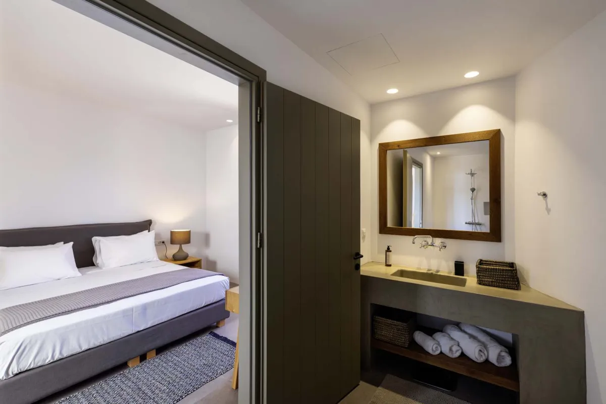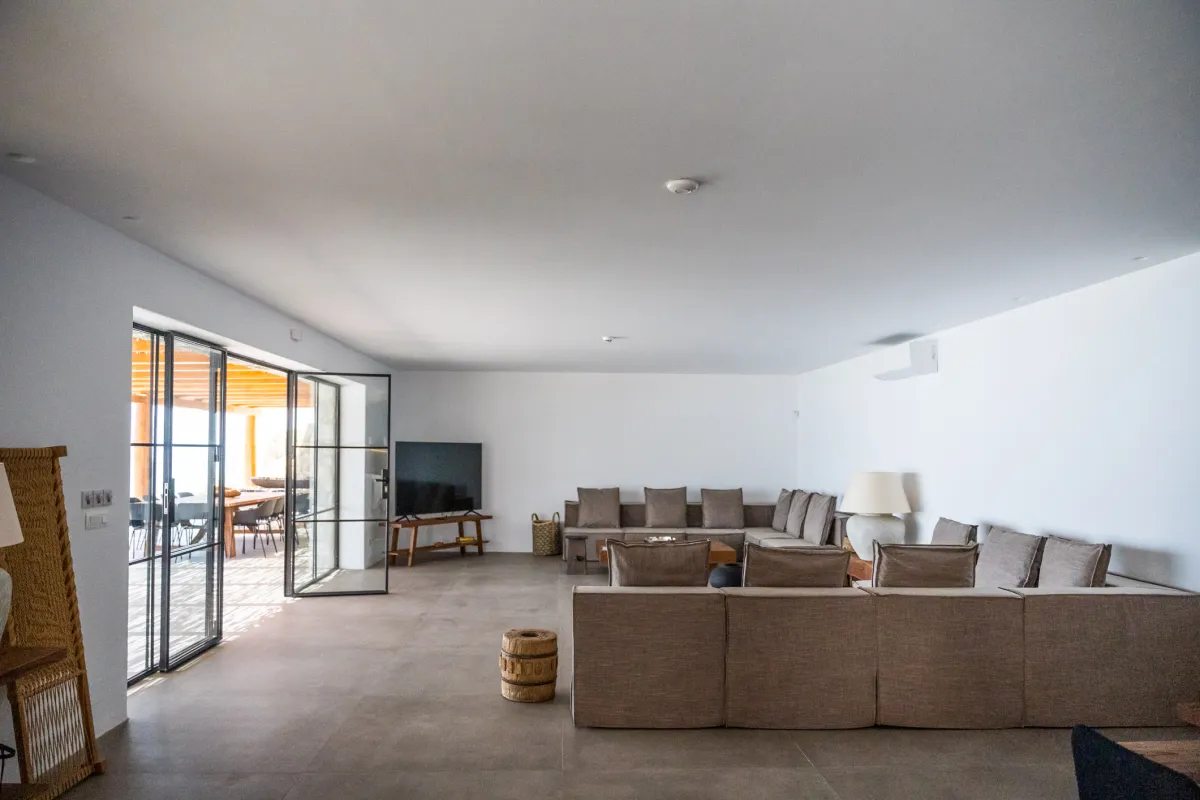 Beach House Arvi East boasts 10 beautifully designed bedrooms, each featuring a blend of comfort and convenience. All 10 bedrooms offer stunning sea views, while 6 of them have direct access to the sea. All come with TVs and a mix of double and single bed arrangements to suit families and groups.
