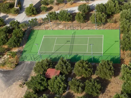 The outdoor area is just as impressive. Guests can enjoy the heated private pool year-round, then step out to a furnished terrace perfect for sunbathing or enjoying evening cocktails. A large electric BBQ and outdoor dining area make al fresco meals effortless. Relax under the Cretan sun or enjoy a friendly game of tennis on-site.