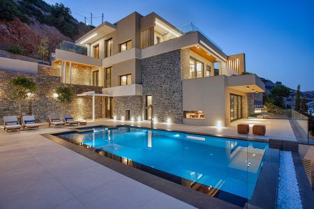 Nestled in the heart of Crete, an exclusive holiday destination in Greece, is Villa Hyperion - a private luxury villa that offers visitors the opportunity to vacation in magnificent splendor on the coast. The exclusive villa rental provides an exquisite base from which to explore the diverse island or just relax in this enchanting part of northern Crete. Villa Hyperion can accommodate up to 14 guests in sumptuous grandeur. The private luxury villa has a trendy living area, comfortably furnished with two large leather sofas and a nesting coffee table, as well as a 65 "Samsung Smart TV, DVD player, and HD Satellite TV. There is also a fireplace, air conditioning, wine cellar, and guest bathroom available.The dining area is host to a large, olive wood table and 12 dining chairs, illuminated by two contemporary ceiling lamps. Villa Hyperion has an elegant, modern kitchen with a built-in oven and smooth electric stovetop, a microwave, and a Whirlpool stainless steel 4-door refrigerator with icemaker, as well as a Nespresso coffee machine, a juicer, and a kettle. Furthermore, there is a flat-screen TV, a kitchen bar with 4 chairs, and a hanging wine glass rack. Adjacent is a fully equipped kitchen extension with a Miele refrigerator and storage space. The luxury villa’s two master suites each boast a king-size bed with bedside cabinets, floor-to-ceiling balcony windows with beautiful sea views, and a large flat-screen TV. Each suite has a large wardrobe with a digital / card safe box. The en-suite bathrooms have double sinks, a Jacuzzi bathtub, and a shower. There are 3 bedrooms with twin / single beds pushed together, sharing balconies with the master bedrooms, and a bathroom with a shower (no bathtub). The last 2 bedrooms are similarly furnished but share an outdoor area, each with its own seating. They also have a bathroom with a shower but no bathtub. On the lower floor of the private villa, there is a gym space with a treadmill and home gym equipment including a weights system. Adjacent to this is a Hamam steam bath with a relaxation area, shower, and toilet. The immaculate outdoor area is home to a heated infinity pool (seawater) with an idyllic sea view, a relaxing Jacuzzi area, and a waterfall jet. The roofed terrace holds a monastery-style table that can seat up to 20 diners, and a room with ample storage space, indoor showers, and a toilet. A barbeque, wooden oven, wall fireplace, and worktop with sink are available for visitors. There are also sun-loungers and an open-air shower with hot and cold water for guests to enjoy. A path with steps leads down to the walking road, from where visitors can gain private access to the sea. The private luxury villa offers parking for up to 5 cars and guests will receive a welcome pack upon arrival. Escape to Villa Hyperion and let the splendor of a Crete luxury vacation gently wash over you! Important notice upon request: Heating of the pool - 350 euro / week.