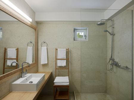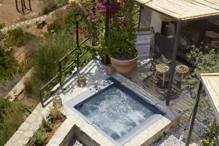 Villa “The Estate” is comprised of TWO separate villas set on One plot of 13,700 square meters (or 1.37 hectares), 180 metres apart (door-to-door), connected through various designed paths amidst olive trees, shades and local vegetation. For a true boutique experience in total privacy due to their orientation, the site terrain and landscaping, these Cretan villas offer blissful environs with patios and infinity-edge pools in the miraculous vistas of the glistening Elounda resort and the Mirabelo Bay. Each villa is separated in two different levels (plus a lower storey) allowing you to seek your peace and quiet. Here, you can enjoy a boutique accommodation experience and exclusion in their elegantly appointed interiors and exteriors.