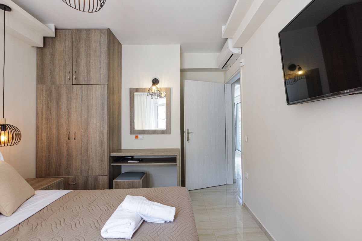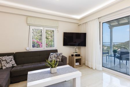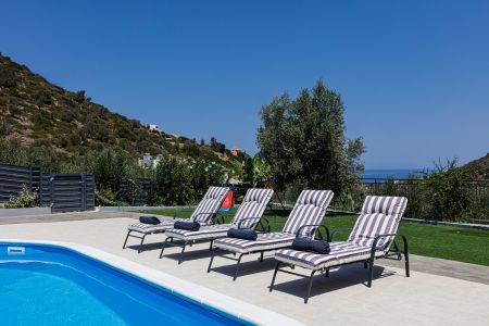 The impeccable outdoor area is host to a private swimming pool in a tranquil garden setting, perfect for families to sit back and enjoy their Crete vacation. There is a fantastic outdoor entertainment area with a gas grill BBQ and a dining area, as well as casual seating and a children’s play area, shielded by a large pergola. Furthermore, there is a football table for guests ’enjoyment while on holiday at the villa. The Crete holiday rental villa also includes parking space for 2 cars.