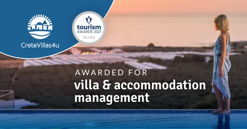 Another success for CreteVillas4u has arrived with a silver award at the annual Tourism Awards 2021 in the Villa Management category, being for the fourth consecutive year among the most prominent companies and institutions in Greece. It’s a really big achievement and we are so proud that Cretevillas4U is truly, once again, on the Greek Tourism map.
