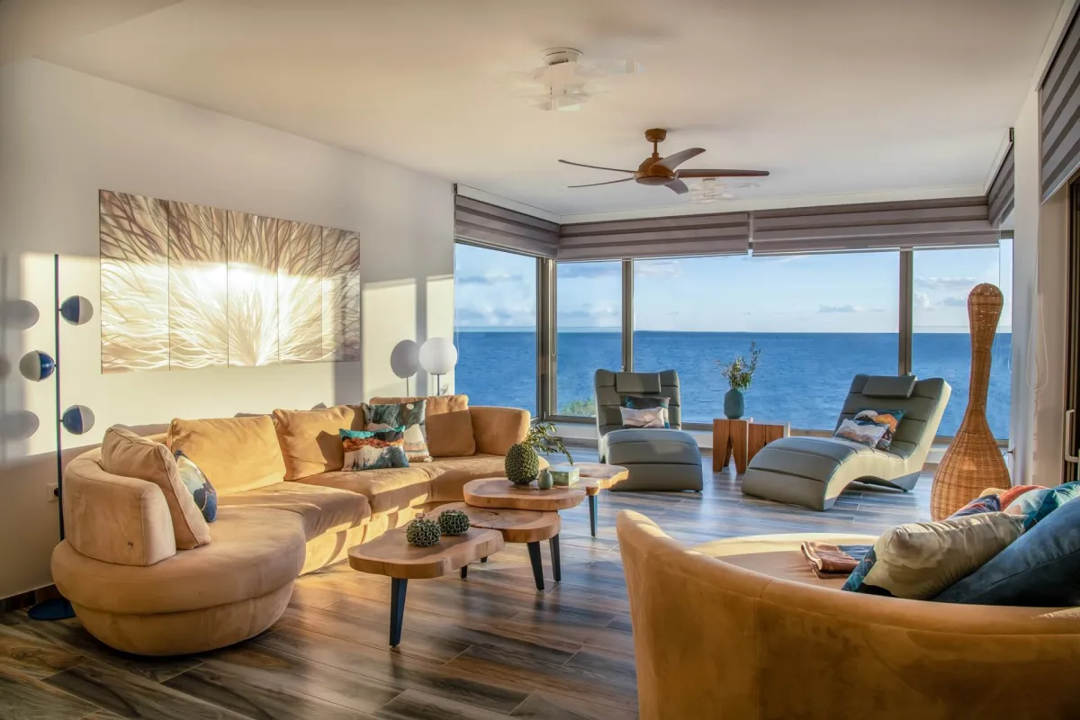 La résidence comprend 3 chambres et 3 salles de bains, toutes avec vue sur la mer. La chambre principale, dans le coin sud-est, dispose d'un lit king-size, d'une salle de bain avec douche et d'un balcon avec salons. La deuxième chambre côté ouest offre un lit king-size et une salle de bain privative. La troisième chambre a un lit queen. Une troisième salle de bain, dotée d'un bain à remous et d'une douche d'hydromassage séparée, est également à la disposition des clients. Il peut accueillir jusqu'à 7 personnes.
